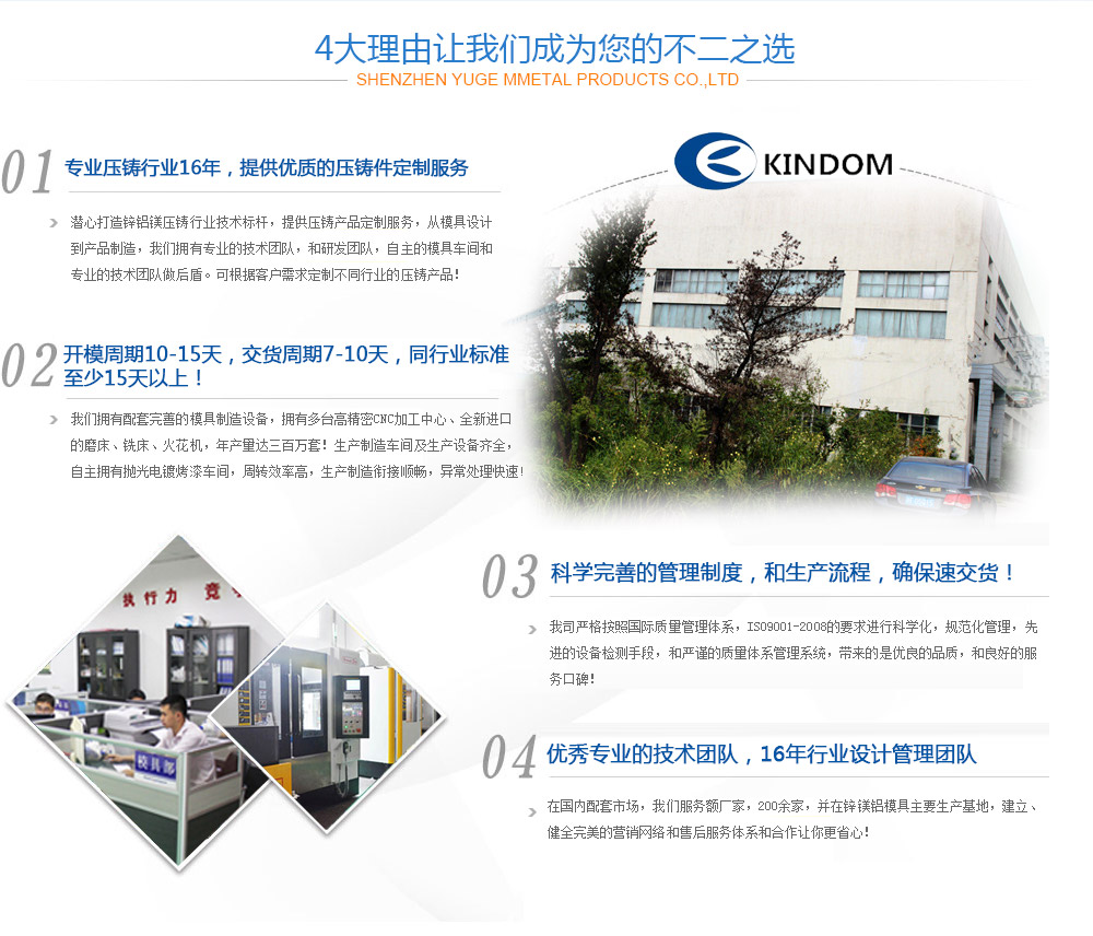 海寧長(zhǎng)命摩擦材料有限公司,創(chuàng)建于2002年,是一家集模具設(shè)計(jì)、制造、鋁合金、鋅合金壓鑄、沖壓加工、表面處理為一體的專業(yè)制造公司,為汽車(chē)、摩托車(chē)、沙灘車(chē)、燈具、網(wǎng)絡(luò)天線、監(jiān)控設(shè)備等行業(yè)提供精密壓鑄件及精密沖壓件。